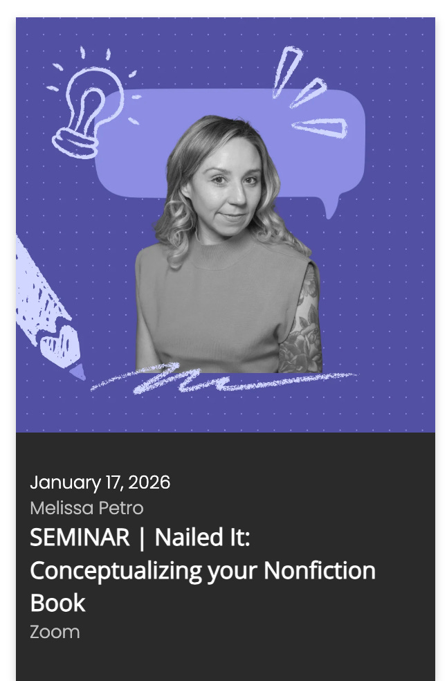 Nailed It: Conceptualizing Your Nonfiction Book (January 17–24) helps you get crystal clear on your book’s purpose, core message, and structure. It’s perfect for writers who are ready to turn a big idea into a concrete, actionable plan. Register here.